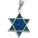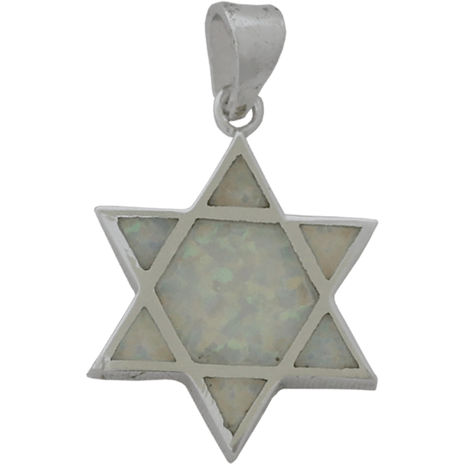 Estrella de David Colgante de Plata esterlina y ópalo azul / blanco .