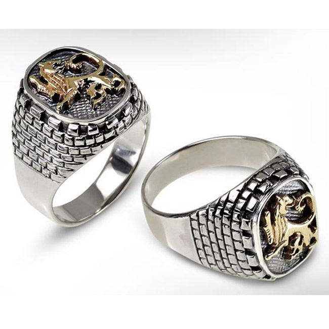 Joyas Rafael Oro y Plata León rugiente Jerusalén Paredes Anillo para hombres